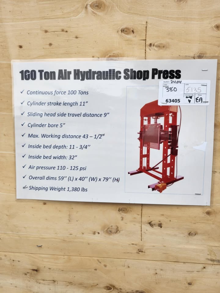 Brand new pneumatic press with movable gantry 100 Ton Shop Press