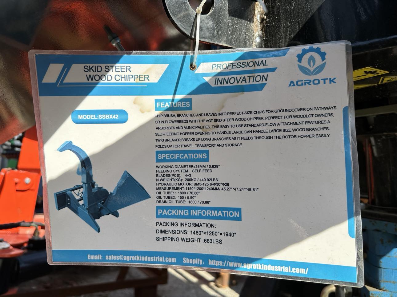 NEW SKID STEER ATTACHMENT WOOD CHIPPER.